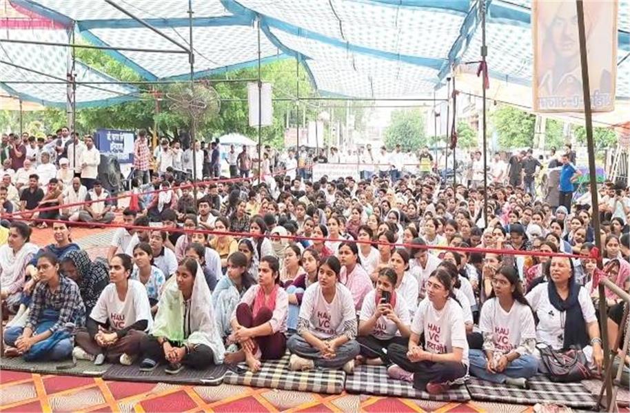 HAU महापंचायत : चौधरी चरण सिंह हरियाणा कृषि विश्वविद्यालय (एचएयू) में छात्र आंदोलन लगातार जारी है। आज आयोजित छात्र न्याय महापंचायत में बड़ी संख्या में लोग आंदोलन को समर्थन देने के लिए पहुंचे। विश्वविद्यालय के छात्र विनोद ने बताया कि हरियाणा के सभी प्रमुख छात्र संगठन, किसान व मजदूर यूनियन, कई सामाजिक संगठन और विभिन्न गांवों के सरपंच आज की महापंचायत में शामिल हुए।